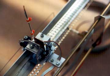 Dieser Gleiter ist - erweitert und modifiziert - in der fertigen Pongmechanik verbaut. Die bewegliche Schienenmechanik auf der er gleitet (siehe Bild vorher) mußte ich verwerfen.