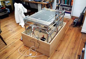 Die fertige Pongmechanik ohne Glasabdeckung.
